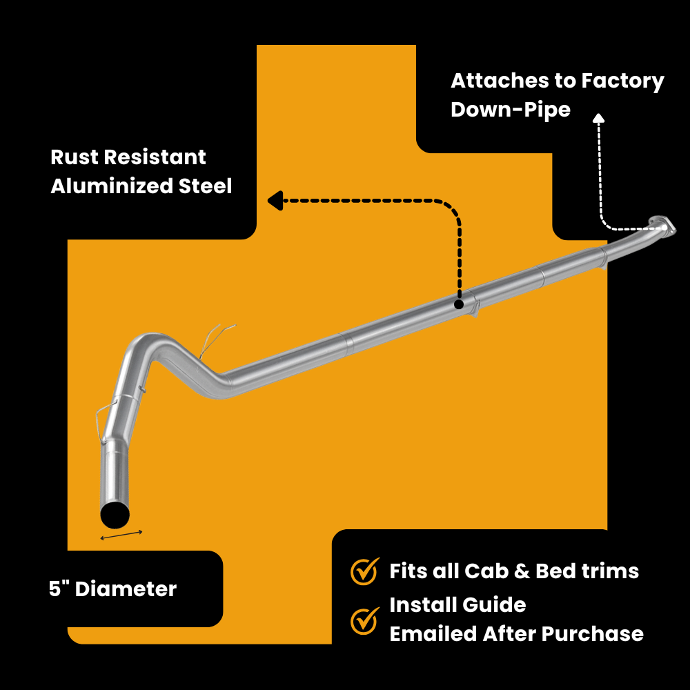 Our kit includes a DPF/CAT delete pipe that bolts in place of the original DPF and CAT in the exhaust system.