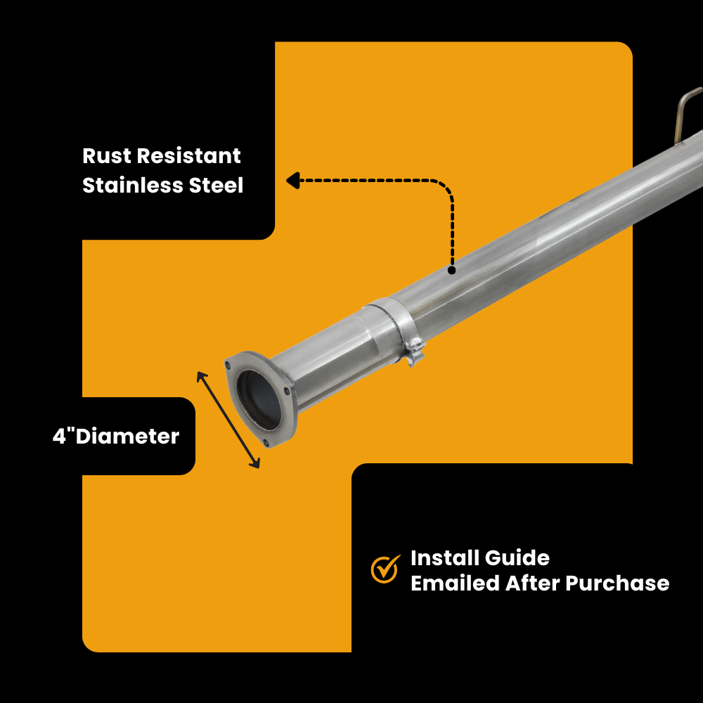2) 4” rust resistant DPF & CAT Delete Pipe