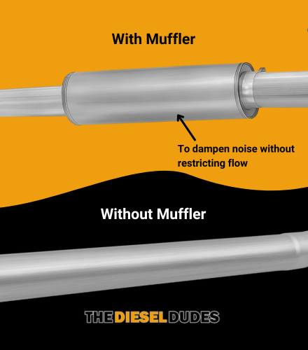 Deleting the DPF will make the exhaust louder. You’ll hear more turbo spool, engine tone, and exhaust note, especially with a straight pipe. We offer optional mufflers for those who want a quieter ride.
