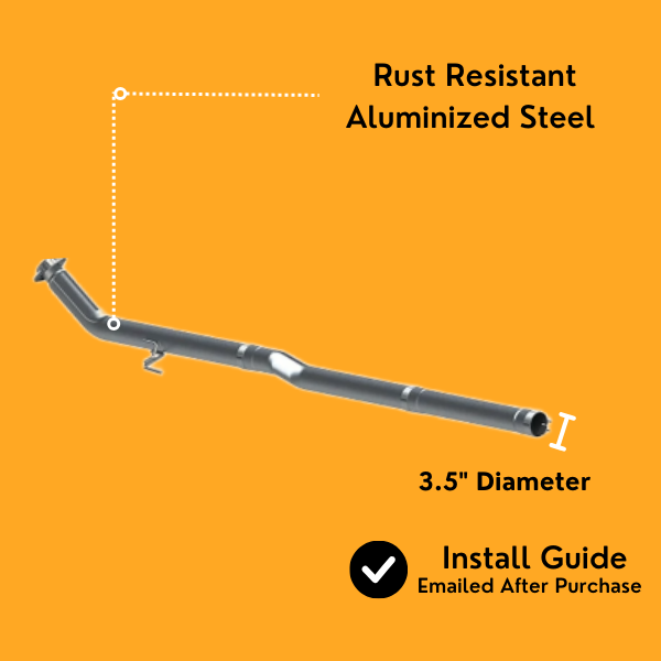 Our kit includes a DPF/CAT delete pipe that bolts in place of the original DPF and CAT in the exhaust system.