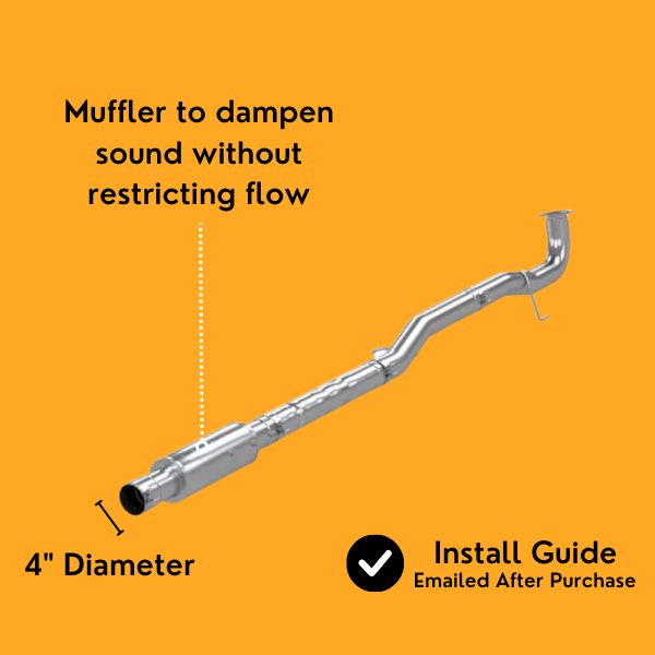 Deleting the DPF will make the exhaust louder. You’ll hear more turbo spool, engine tone, and exhaust note, especially with a straight pipe. We offer optional mufflers for those who want a quieter ride.