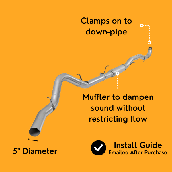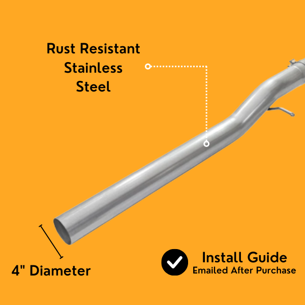 Our kit includes a DPF/CAT delete pipe that bolts in place of the original DPF and CAT in the exhaust system.