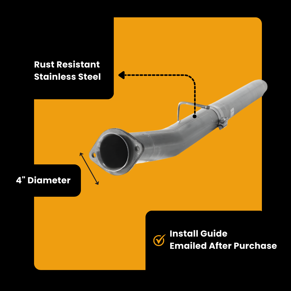 Our kit includes a DPF/CAT delete pipe that bolts in place of the original DPF and CAT in the exhaust system.