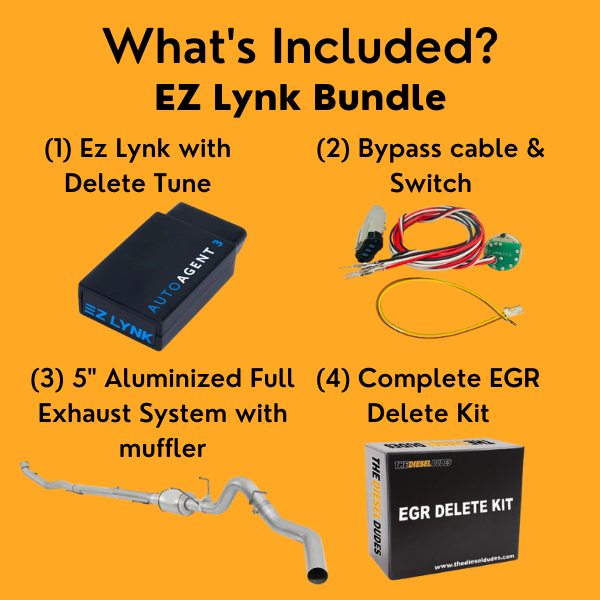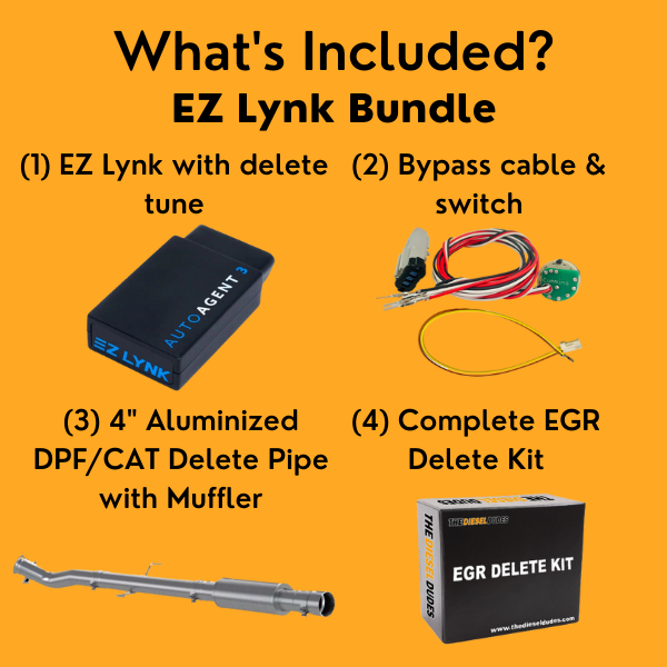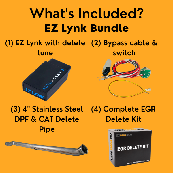 Unleash your truck’s full potential with our complete Full Delete Bundle. This all-in-one kit removes your entire emissions system so you can say goodbye to emission  codes, improve fuel economy, and extend the life of your engine. Each bundle includes a powerful tuner loaded with delete tunes, a heavy-duty rust-resistant delete pipe, and a complete EGR delete kit, everything you need for maximum durability, reliability, and efficiency.